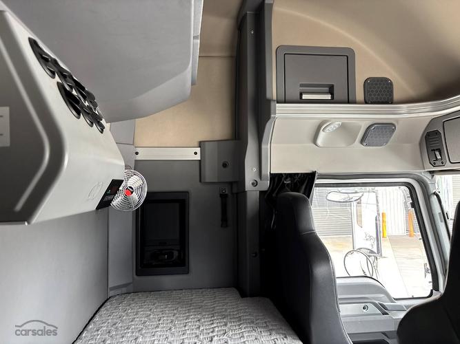 - Current version dash & cabin tech with high visibility display, Spacious 36" walk-through high rise sleeper with stand-up height cabin